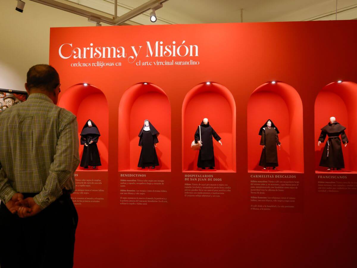 La exposición “Carisma y misión. Órdenes religiosas en el arte virreinal surandino” aborda mayoritariamente pinturas de la Colección Joaquín Gandarillas que representan a franciscanos, jesuitas, dominicos, agustinos, mercedarios, hospitalarios, carmelitas y benedictinos.