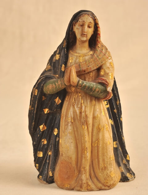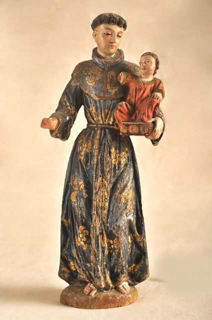 La muestra exhibe un conjunto de esculturas religiosas de pequeño formato, originalmente destinadas al uso doméstico devocional en el periodo virreinal. Estas imágenes, talladas en madera o alabastro y pintadas con delicadeza, encarnan la profunda religiosidad popular de la época, donde los santos eran protectores cotidianos, modelos de virtud y guías hacia la trascendencia. En ellas se mezclan estética y fe, vida cotidiana y espiritualidad, en un contexto donde lo sagrado impregnaba todos los ámbitos. La exposición destaca la dimensión simbólica de estas piezas, rescatadas del olvido por Joaquín Gandarillas, como vestigios de una cultura profundamente marcada por la interpenetración entre lo religioso y lo doméstico. A través de figuras como San José, María Magdalena, San Francisco de Asís y Santa Rosa de Lima, se evoca una rica iconografía ligada a la historia, la devoción y la identidad latinoamericana. Esta muestra invita tanto al deleite contemplativo como a la reflexión sobre el rol del arte devocional en la construcción del imaginario cultural de América Latina.