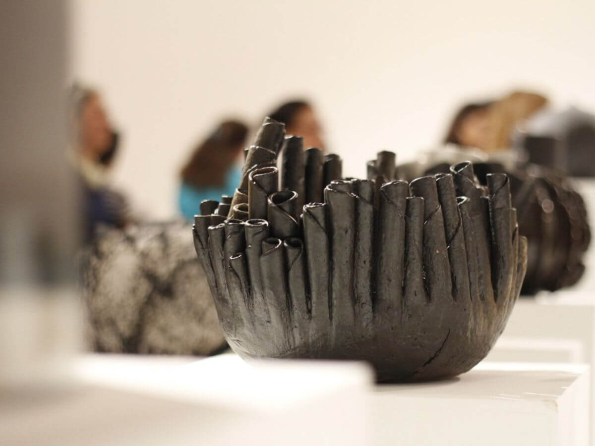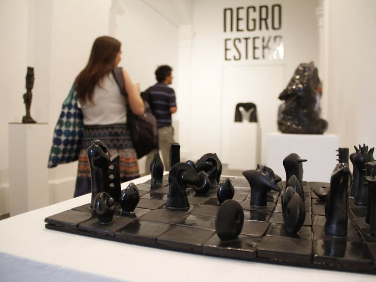 La exposición, organizada por la Revista de Cerámica Esteka dirigida por la destacada ceramista Ruth Krauskopf, reúne obras de artistas nacionales y extranjeros que respondieron a la convocatoria para trabajar en torno a un eje común: el color negro. La muestra destaca la diversidad técnica y expresiva del arte cerámico, abarcando disciplinas como porcelana, gres, baja temperatura, raku, quema primitiva, con aserrín, soda, leña, sal y más. Esta variedad da cuenta de la versatilidad del lenguaje cerámico en forma, técnica y contenido. Se invita al público a observar con detención las posibilidades de la arcilla, material humilde que, al ser sometido al fuego, se transforma en algo permanente. Al igual que las culturas más antiguas, los ceramistas contemporáneos encuentran en este mineral una vía para registrar su vida y costumbres. Esta muestra celebra la vigencia de una tradición milenaria y su capacidad de seguir generando significado, belleza y reflexión desde la materialidad más esencial. Algunos de los participantes fueron Ximena Ducci, Sofía Donovan, M. Inés Varela, Teresita Marín, Pascale Lehmann y Benjamín Lira. Entre los expositores de regiones y del circuito internacional estuvieron Jesús Castañón de España, Andrea Hegeman de California, Estados Unidos, Rod Hanson de Nueva Jersey, Estados Unidos y Vesna Granic, de Nueva Zelanda.